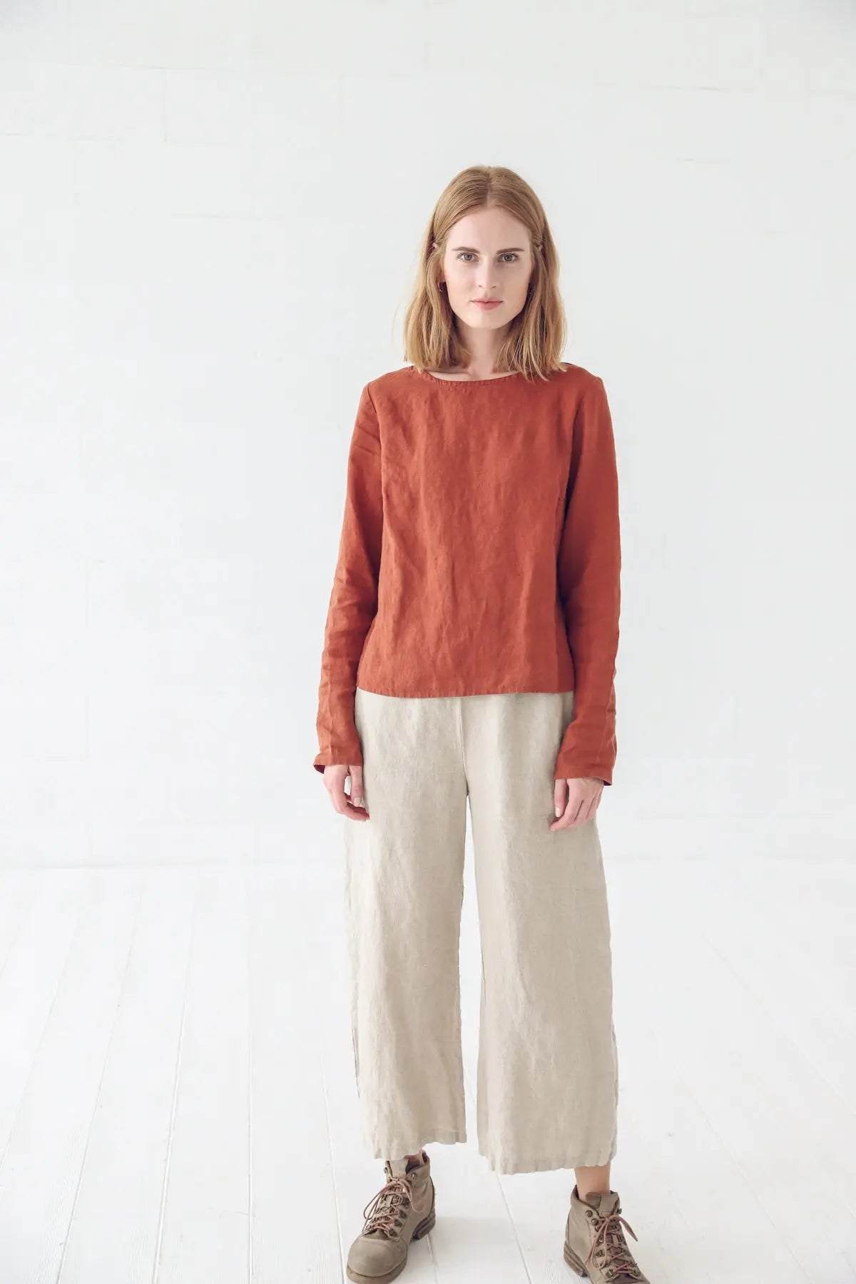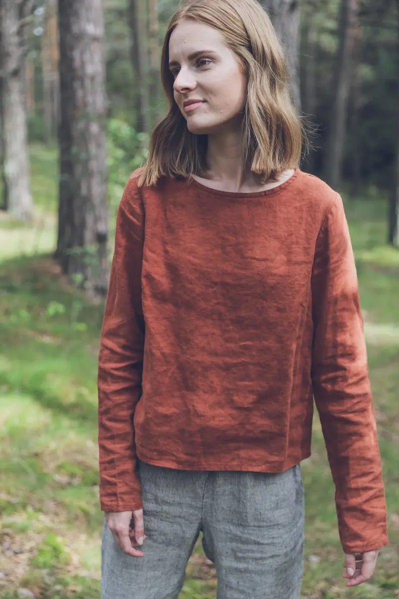 Stay cozy and stylish all year round in our long sleeves linen blouse. Designed with a classic silhouette and handmade from nature-friendly linen, this round-neck top is perfect for chilly spring days, cold season nights, and late summer evenings. Its feminine shape and simple cut make it a wardrobe essential for every day.
